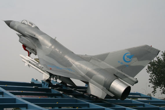 中國自主研制殲十戰(zhàn)機。圖為一航大廈前的殲十全比例模型。
