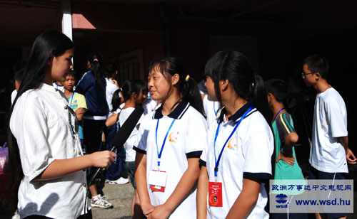 《歐洲萬(wàn)事達(dá)報(bào)》十三歲的特約小記者陳藝捷采訪了地震災(zāi)區(qū)的學(xué)生劉一姍與趙宇,他們告訴記者,我們來(lái)到這里很快樂(lè),剛開(kāi)始不是太習(xí)慣,因?yàn)槲覀兯拇◥?ài)吃辣椒,菜以辣為主,這里的匈餐很少吃到辣的菜,在飲食方面開(kāi)始有些不適應(yīng),現(xiàn)在好多了慢慢適應(yīng)了。(文/宋聚芳 攝影/陳雷)