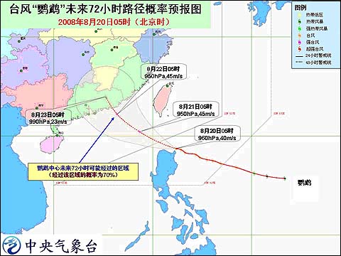 受其影響,今天白天到夜間,巴士海峽、巴林塘海峽、臺灣省南部沿海、臺灣東南部海面、南海東北部海面將有到7-10級大風,“鸚鵡”中心經(jīng)過的附近海面風力可達11-14級;臺灣南部的部分地區(qū)將有大到暴雨。