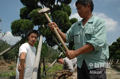 9月12日,園林工人在浙江臺州一苗圃加固花木,以應(yīng)對臺風(fēng)“森拉克”的到來。作 者:陳林聰