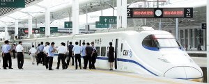 從9月24日起,每日將有4對(duì)京津城際高鐵往返于北京—塘沽兩地,全程用時(shí)56分鐘左右,票價(jià)分為三檔,特等座為118元,一等座為84元,二等座為70元。最早一班車10:45從北京南開往塘沽,最晚一班車19:59由塘沽開往北京南站。這四對(duì)高鐵列車將在天津站停靠,由天津站開往塘沽的票價(jià)分別為特等座19元,一等座15元,二等座12元。昨天,一列京津城際高速列車15:55由北京南站開往塘沽站,16:49準(zhǔn)點(diǎn)到達(dá)塘沽站,進(jìn)行了運(yùn)營(yíng)前的全面試跑,以確保24日順利投入運(yùn)營(yíng)。