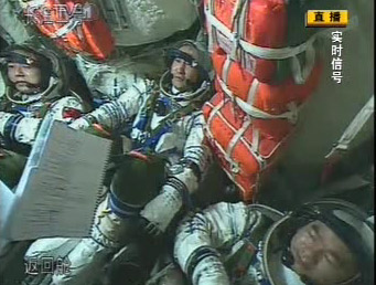 資料圖:當船箭分離,神七飛船順利進入預定軌道后,航天員翟志剛將手中的小冊子放開展示失重狀態(tài)。(視頻截圖)