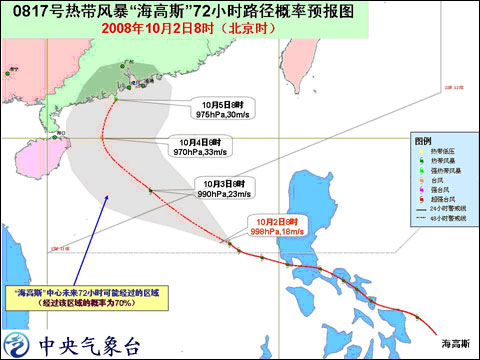 另?yè)?jù)廣東媒體報(bào)道,氣象部門預(yù)測(cè),“海高斯”未來(lái)將影響廣東南部市縣,有大風(fēng)及中到大雨。10月4至5日,“海高斯”可能對(duì)廣東沿海造成風(fēng)雨影響。廣州市區(qū)今天及明天仍以多云為主,天氣晴朗干燥;4~5日多云轉(zhuǎn)陣雨。