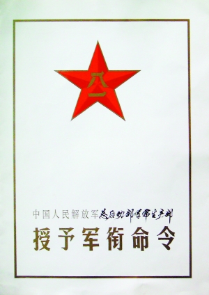 圖:1988年新軍銜制實施后頒布的授予軍銜命令狀。