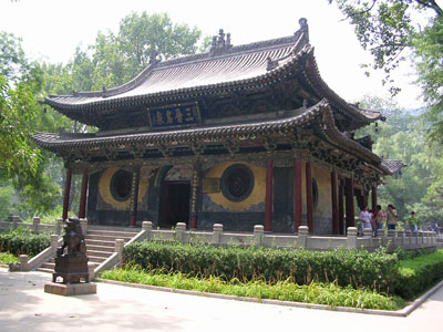 在中軸線末端,是宏偉壯麗的圣母殿。圣母殿背靠懸甕山,前臨魚沼,晉水的其他二泉——“難老”和“善利”分列左右。此殿創(chuàng)建于北宋天圣年間(公元1023——1032年),崇寧元年(公元1102年)重修,是現(xiàn)在晉祠內(nèi)最為古老的建筑。殿高約十九米,重檐歇山頂,面寬七間,進深六間,平面布置幾乎成方形。殿身四周圍廊,前廊進深兩間,廊下寬敞。在我國古代建筑中,殿周圍廊,此為現(xiàn)存最早的一個實例。殿周柱子略向內(nèi)傾,四根角柱顯著升高,使殿前檐曲線弧度很大。下翹的殿角與飛梁下折的兩翼相互映襯,一起一伏,一張一弛,更顯示出飛梁的巧妙和大殿的開闊。殿、橋、泉亭和魚沼,相互陪村,渾然一體。圣母殿采用“減柱法”營造,殿內(nèi)外共減十六根柱子,以廊柱和檐柱承托殿頂屋架,因此,殿前廊和殿內(nèi)十分的寬敞!皽p柱法”的熟練使用。說明宋代在建筑上已進一步掌握了力學原理;斗拱和柱高的比例適當,避免了隋唐建筑中用料的浪費,在建筑式樣上也更富于藝術性。我國的木結構建筑,經(jīng)歷了一個由隋唐的雄壯堅實到明清的華麗輕巧的發(fā)展地程,而宋代建筑正是這個過程中的重要環(huán)節(jié)。圣母殿是宋代建筑的代表作,對于研究我國宋代建筑和我國建筑發(fā)展史都很有價值。殿內(nèi)無柱,不但增加了高大神龕中圣母的威嚴,而且為設置塑像提供了很好的條件。殿內(nèi)共四十三尊泥塑彩繪人像,除龕內(nèi)二小像系后補外,其余多北宋代原塑。主像圣母,即唐叔虞和周成王的母親,周武王的妻子,姜子牙的女兒——邑姜,其塑像設在大殿正中的神龕內(nèi)。其余四十二尊侍從像對稱地分列于龕外兩側。其中宦官像五尊,著男服的女官像四尊,侍女像共三十三尊。圣母邑姜,曲膝盤坐在飾鳳頭的木靠椅上,鳳冠蟒袍,霞帔珠瓔,面目端莊,顯示了統(tǒng)治者的尊貴和奢華。四十二個侍從像,手中各有所奉,為帝后服種種勞役,例如侍奉文印翰墨,灑掃梳妝,奉飲食,侍起居以至奏樂歌舞等等。這些塑像造型生動,姿態(tài)自然,尤其是侍女像更是精品。宋代的藝人,滿懷同情,塑造了一群終生被幽禁深宮,失去了自由,埋葬了青春的女性。這些侍女像的肢體身材比較造度,服飾美觀大方,衣紋明快流暢。她們的年齡或任或少,身段或豐滿或苗條,面龐或圓潤或清秀,神態(tài)或幽怨或天真,一個個性格鮮明,表情自然,加之高度與真人相仿,更顯得栩栩如生。這組塑像突破了神廟建筑中以塑造神佛為主的老套,真實地表現(xiàn)了被禁錮深宮受盡役使的侍從們的生活精神面貌,從而反映了封建社會中的一個側面。在技巧上,顯然相當準確地掌握了人體的比例和解剖關系,手法純熟,有高度的藝術表現(xiàn)力。它們是我國古代雕塑藝術中的珍品,在美術史上占有重要的位位。人們談到晉祠,往往總要談到這些精彩的宋塑。