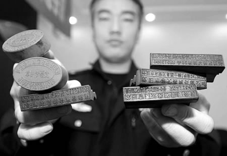 7月中旬,城管治安分局查處一大隊(duì)薛富日大隊(duì)長(zhǎng)在調(diào)查一起假證案件中,獲得一條重要線索:一女子在公章刻印處購(gòu)買假公章,包括餐飲、商業(yè)、娛樂(lè)、工業(yè)、供暖、醫(yī)藥等多個(gè)行業(yè),數(shù)額巨大。薛富日經(jīng)過(guò)初步調(diào)查,確認(rèn)情況屬實(shí),立即向分局領(lǐng)導(dǎo)匯報(bào)。