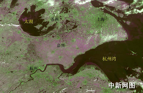 “環(huán)境減災(zāi)”A、B星拍攝并下傳的長(zhǎng)三角地區(qū)影像圖。