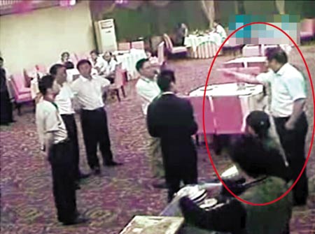 酒樓監(jiān)控錄像顯示,扎著馬尾辮的小陳走在前面,一名身材高大的白衣黑褲男子跟著,小陳熱情地比劃著指路,男子在其身后對其上下打量。約10秒后,兩人走出監(jiān)控鏡頭的監(jiān)控范圍。不到一分鐘,小陳奔跑著出現(xiàn)在鏡頭內,徑直往包房跑去。