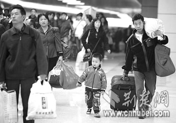 數(shù)據(jù)可以進(jìn)一步印證我省農(nóng)民工返鄉(xiāng)的步伐。記者從武昌火車站了解到,近幾周來,從武昌站出站的乘客數(shù)量明顯增加,其中南線增加了20%左右,他們大部分是來自廣州、深圳和惠州一帶的農(nóng)民工。