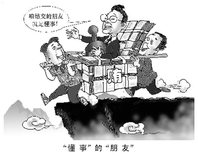 “跟屁蟲”,是個(gè)很不雅的詞,指老跟在別人背后的人。詞典上說,此語“含厭惡意”。但是一些領(lǐng)導(dǎo)干部,對(duì)“跟屁蟲”,尤其是請自己關(guān)照幫忙、向自己進(jìn)貢送錢的老板,卻絲毫沒有厭惡的意思,相反,把他們當(dāng)成朋友,喜歡這樣的“跟屁蟲”在自己身邊吹喇叭抬轎子,經(jīng)常拜訪自己,對(duì)自己“表示感謝”。領(lǐng)導(dǎo)干部要慎重對(duì)待朋友交往,擇善而交,恐怕首先要遠(yuǎn)離“跟屁蟲”、提防“跟屁蟲”,否則你就會(huì)成為下一個(gè)王建國。