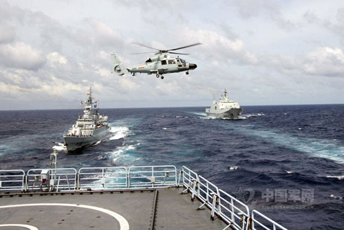 海上戰(zhàn)艦馳騁,空中戰(zhàn)鷹盤旋。11月上旬,南海艦隊組織支援艦、登陸艦、驅(qū)逐艦、護(hù)衛(wèi)艦、艦載直升機(jī),首次在南沙附近海域開展了一次綜合作戰(zhàn)支援演練。他們在成功組織“兩橫一縱”海上補給訓(xùn)練的同時,演練了艦載直升機(jī)起降、懸停、偵察、模擬救援等課目,使艦機(jī)協(xié)同能力有了新的提高。(中國軍網(wǎng)發(fā) 饒燕文攝)