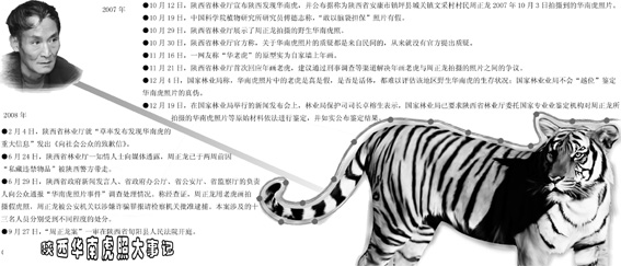 是的,小小的“華南虎照”,在大事云集的今年,依然不可思議地牽動了太多人的目光。且不說當初“打虎”、“挺虎”的喧囂,單說一個多月前(9月27日)的一審。當時,設在旬陽縣華美大酒店的記者接待中心也是人頭攢動,忙壞了接待人員;打虎派及法律界人士的入住讓當?shù)鼐频陰缀鮽個“客滿”。