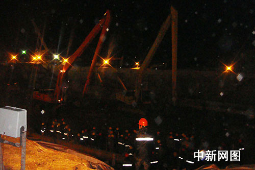 圖為19日凌晨?jī)牲c(diǎn)三十分左右,救援人員正在按搶險(xiǎn)方案進(jìn)行搜救