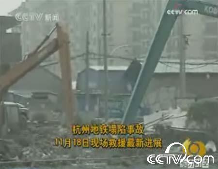 記者王克生:杭州地鐵工地搶險施救工作還在緊張進行,到目前救援人員發(fā)現(xiàn)的還是那七名遇難人員,初步核實還是有14個人下落不明,根據(jù)目前掌握的情況和現(xiàn)場的情況分析,因為塌陷的地方已經(jīng)完全被掩埋了,另外里面還有水,所以這14個人生還的希望已經(jīng)不是特別大了。經(jīng)過昨天晚上和今天上午連夜不斷的工作,原先倒塌坑內(nèi)橫七豎八的鋼管已經(jīng)清除了,根據(jù)現(xiàn)場救援專家的意見,救援的重點是盡快清理塌陷厚約大約10米左右的瘀泥等雜物,防止可能出現(xiàn)對被困人員身體的傷害,救援工作目前主要以人工開挖的方式為主,可能的情況下再動用一些大型的施工設備,為了加快進度,救援人員用水沖刷堅固,然后把泥漿泵稀釋地面,估計稍后會發(fā)現(xiàn)遇難人員。