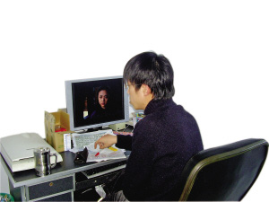 11時(shí)15分,未到午休時(shí)間,部分工作人員已經(jīng)穿好棉衣,相互招呼著準(zhǔn)備出去吃飯。在二樓的走廊里,“滴滴……”一連串QQ傳遞信息的聲音傳來(lái),循著聲音記者來(lái)到了248辦公室外。透過(guò)虛掩的房門,記者看到一名30多歲的男子正專心地對(duì)著電腦忙碌著。
