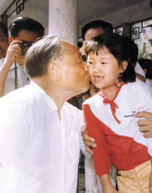 1986年8月20日,鄧小平同志視察紅橋區(qū)居民小區(qū)時親吻在這里游玩的孩子。