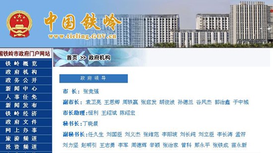 28日鐵嶺市政府政府領(lǐng)導(dǎo)名單(網(wǎng)站截圖)