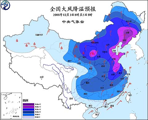 中央氣象臺2008年12月3日06時繼續(xù)發(fā)布寒潮橙色警報: