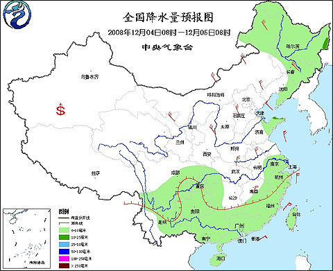 2008年12月4日8時(shí)—12月5日8時(shí)全國(guó)降水量預(yù)報(bào)圖