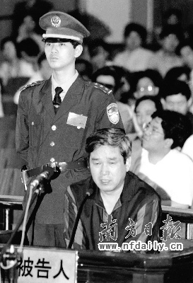 “9898”湛江走私大案中,原湛江海關(guān)關(guān)長曹秀康在法庭上受審。 資料圖片