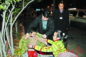 廣州市救助站流動服務隊的工作人員深夜巡邏送溫暖。