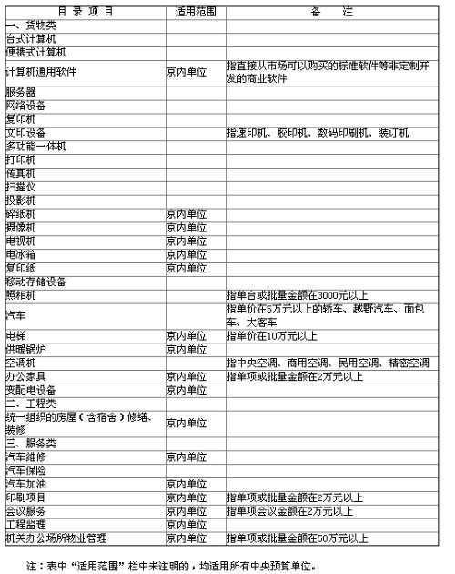 中央預(yù)算單位2009-2010年政府集中采購目錄及標準