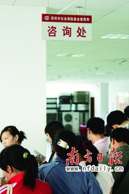 時近年末,深圳市社保中心個人服務窗口顯得很忙碌。資料圖片