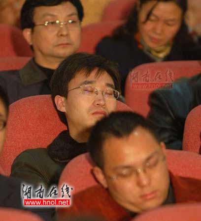 部分公務(wù)員會上睡覺被拍。