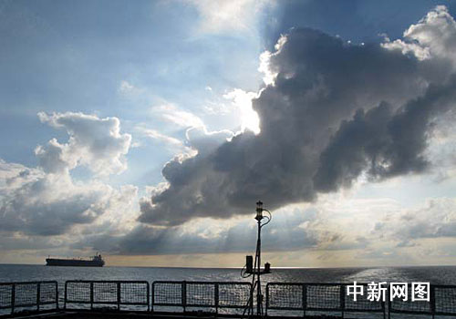 一邊想著暈不暈船的事,一邊信步從前甲板走到尾甲板,還順手在甲板上拍了幾幅“?凇迸灪叫旭R六甲海峽的風(fēng)光片,瞅著拍攝到的海天相接、軍艦劈浪、陽光與烏云“斗智斗勇”的場面,自我感覺相當(dāng)不錯(cuò)。(完)