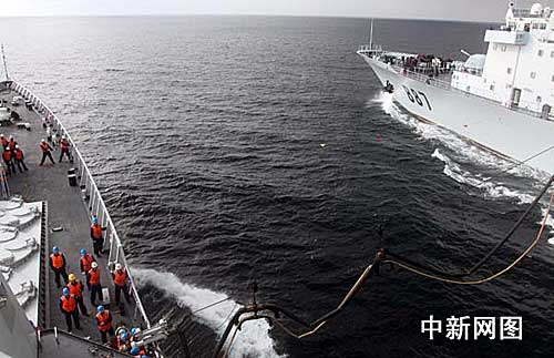中新社“海口”艦馬六甲海峽十二月三十日電 (記者 孫自法)中國海軍赴亞丁灣、索馬里海域護(hù)航艦艇編隊,三十日下午在馬六甲海峽順利完成首次海上綜合補給。(完)