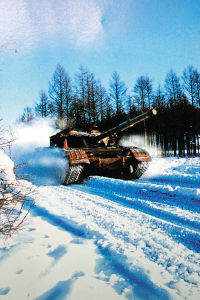 “‘?dāng)场粋(gè)營(yíng)的兵力向我指揮所進(jìn)犯,命你部迅速出擊!”正在野外進(jìn)行冬季適應(yīng)性訓(xùn)練的沈陽軍區(qū)某裝甲團(tuán)突然接到上級(jí)命令。坦克一營(yíng)官兵用燃油加熱器快速對(duì)水箱和油箱進(jìn)行加溫。不到10分鐘,鐵甲戰(zhàn)車卷著雪浪向茫茫林海深處駛?cè)ァ?