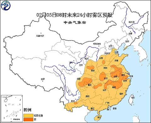 中央氣象臺2009年2月5日06時發(fā)布大霧預(yù)報: