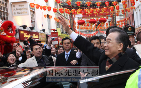 在每個地方,溫總理都在不停地講話,對政府首腦,對商界領袖,對華人華僑。一到倫敦,他第一時間去到唐人街,拿著麥克風,站在高臺上,面對兩千多人信心喊話。事后他說:“這次雖然是春節(jié)期間出訪,但是面對唐人街的那些中國同胞,一切都值得了!