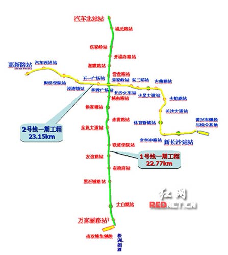 1號線對接株潭輕軌,2號線對接武廣線