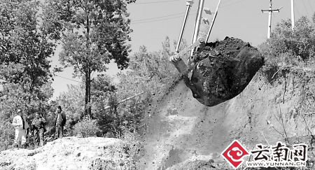 昨日上午10時30分,由于現(xiàn)場土質(zhì)松軟地質(zhì)條件特殊,礦洞上方山體突然發(fā)生滑坡,塌方近500多立方米沙石,將坍塌礦洞入口全部覆蓋,營救行動受到巨大影響。至昨日中午12時,經(jīng)過200多名營救人員24小時緊張挖掘,開挖清理土方10000余立方米,掘進(jìn)山體20多米,但因山體坡度大、地質(zhì)情況復(fù)雜,礦洞上方還有高壓輸電線路水泥桿,營救推進(jìn)艱難。