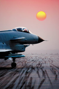 傍晚,落日的余暉為大地披上了一抹金紅色,一架架殲-10戰(zhàn)機(jī)在晚霞的光暈中翩然著陸。(賁道春 閆國有 本報(bào)記者 喬天富攝影報(bào)道)