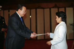 中新網(wǎng)3月12日電 據(jù)外交部網(wǎng)站消息,3月11日,中國(guó)新任駐菲律賓特命全權(quán)大使劉建超在菲律賓總統(tǒng)府向阿羅約總統(tǒng)遞交國(guó)書。菲律賓外交部長(zhǎng)羅慕洛、總統(tǒng)府禮賓局局長(zhǎng)桑托斯、中國(guó)駐菲律賓使館高級(jí)外交官等參加。