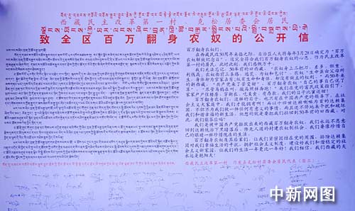 中新網(wǎng)拉薩3月27日電(記者柳俊武)3月28日,西藏各族民眾將迎來(lái)首個(gè)“百萬(wàn)農(nóng)奴解放紀(jì)念日”,西藏自治區(qū)也將在拉薩隆重紀(jì)念西藏民主改革50周年。27日晚,西藏民主改革第一村——山南地區(qū)克松居委會(huì)居民,懷著激動(dòng)的心情,向中新社、中新網(wǎng)寄來(lái)了他們致全區(qū)百萬(wàn)翻身農(nóng)奴的一封公開信。全文如下: