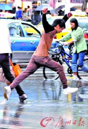 昨日下午5時(shí)30分起,廣州市城區(qū)今年降了首場(chǎng)大暴雨。這次短歷時(shí)強(qiáng)暴雨造成白云區(qū)、天河區(qū)、黃埔區(qū)、荔灣區(qū)、海珠區(qū)、越秀區(qū)出現(xiàn)水浸,市區(qū)共出現(xiàn)54個(gè)水浸點(diǎn)。各地較嚴(yán)重的水浸點(diǎn)水深達(dá)到1米多,其中崗頂?shù)乃斐纱蠖萝,記者也在行?jīng)中山大道的公交車被困兩小時(shí),著實(shí)有些被憋暈了的感覺。