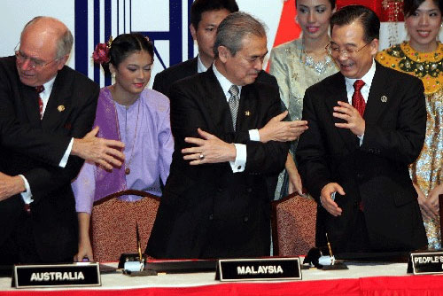 2005年12月14日,首屆東亞峰會在馬來西亞首都吉隆坡舉行,來自東盟十國、中國、日本、韓國、印度、澳大利亞和新西蘭的國家元首或政府首腦與會。會上,與會各國領(lǐng)導(dǎo)人簽署了《東亞峰會吉隆坡宣言》,討論通過了關(guān)于防控和應(yīng)對禽流感的宣言,并就加強合作、相互依存、共謀發(fā)展達成廣泛共識。溫家寶總理在首屆東亞峰會上發(fā)表了題為《堅持開放包容 實現(xiàn)互利共贏》的講話。