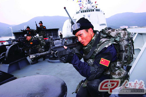 2005年,“和平使命—2005”中俄聯(lián)合軍演正式在俄羅斯的符拉迪沃斯托克和我國(guó)山東半島及附近海域拉開(kāi)帷幕,為期八天的演習(xí)跨越兩國(guó)陸、海、空域,共分“海上封鎖作戰(zhàn)、兩棲登陸作戰(zhàn),強(qiáng)制隔離作戰(zhàn)”三個(gè)階段,向外界展示了強(qiáng)大的綜合作戰(zhàn)能力,顯示人民海軍與外國(guó)海軍合作的層次、規(guī)模和難度不斷提高。