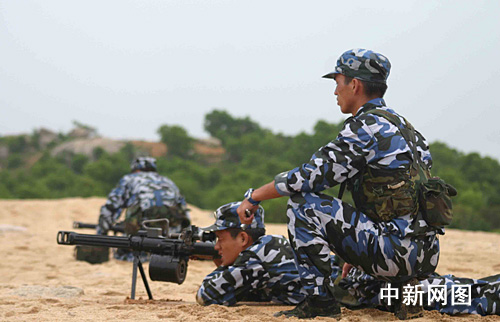 資料圖:中國(guó)海軍陸戰(zhàn)隊(duì)某部在南海之濱水際灘頭進(jìn)行各種實(shí)兵演練,通過(guò)小比武、小競(jìng)賽等形式,有效地提高了部隊(duì)?wèi)?zhàn)斗力。作者:韓海冰