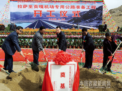 4月28日上午,西藏第一條高等級(jí)公路——拉薩至貢嘎機(jī)場(chǎng)專(zhuān)用公路準(zhǔn)備工程正式開(kāi)工奠基,這標(biāo)志著西藏干線公路建設(shè)目標(biāo)從通暢向快捷的轉(zhuǎn)型。