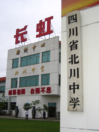 “5.12”地震中,北川中學(xué)的2800多名師生里有上千人遇難。除了一棟老教學(xué)樓,校舍全部倒塌損毀。為了安全,據(jù)長(zhǎng)虹培訓(xùn)中心主任侯慶國(guó)介紹,地震后第二天,學(xué)校的很多師生就轉(zhuǎn)移到了綿陽市九州體育館。后來在長(zhǎng)虹集團(tuán)的幫助下,北川中學(xué)于5月19日在其培訓(xùn)中心復(fù)課。復(fù)課儀式上,長(zhǎng)虹集團(tuán)送來了從學(xué)校廢墟中找到的校牌——這段故事已成為佳話。
