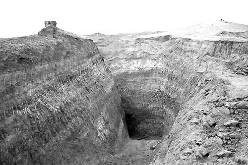 下午,這位分工管理不可移動文物的管理員,同文管所司機趙清泉,早早就出發(fā)了。市里沒有借到施工機械,他們就到鄰近的永寧縣閩寧鎮(zhèn)租借了一輛裝載機,等他們開赴現(xiàn)場已是下午4點了。還沒到現(xiàn)場,他們就發(fā)現(xiàn)有人駕駛一輛切諾基快速逃離,不遠處有一人也聞風跑向西面的大荒丘!坝钟腥吮I墓!”黃金成、趙清泉當即向所長李鵬作了匯報并向公安機關(guān)報案。