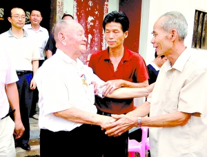 雖然回到故鄉(xiāng)只有短短的3天時間,但卻解了林峰67年的思鄉(xiāng)之苦!三天來,林峰受到了當?shù)攸h委政府和村干部們的熱情歡迎,所到之處,家鄉(xiāng)人民對這個抗日老兵都非常敬重,并為他當年投筆從戎投身抗日烽火的愛國情懷感到由衷的驕傲。