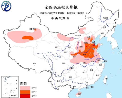 中央氣象臺(tái)今天早晨六點(diǎn)鐘繼續(xù)發(fā)布高溫橙色警報(bào):受大陸暖氣團(tuán)影響,預(yù)計(jì)今天白天,華北大部、黃淮、江淮、江漢、陜西中部和東部、四川盆地東北部、內(nèi)蒙古中西部、新疆南疆盆地等地有35℃以上的高溫天氣,其中,陜西中部、山西西南部、河北南部、京津地區(qū)、河南中東部、山東大部、安徽北部和南疆盆地等地的部分地區(qū)最高氣溫可達(dá)37~39℃,河北南部、山東北部局部地區(qū)氣溫可達(dá)40℃。