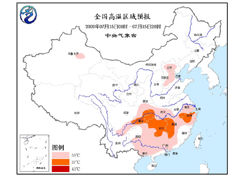 中新網(wǎng)7月15日電 據(jù)中國氣象局網(wǎng)站消息,中央氣象臺(tái)15日06時(shí)繼續(xù)發(fā)布高溫橙色警報(bào):預(yù)計(jì),今天白天,江漢大部、江南、華南中北部、貴州東部、重慶、四川盆地東部、陜西東南部、河北大部及京津地區(qū)等地將有35℃以上的高溫,其中,浙江北部、安徽東南部、江西中西部、湖南大部、湖北西南部、重慶大部等地的部分地區(qū)最高氣溫可達(dá)37~39℃。