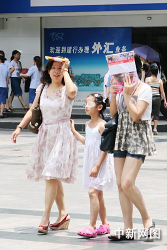 正午時(shí)分,熱浪襲人,路上行人稀少。記者在街頭看到,偶爾經(jīng)過的行人都盡量走在樹蔭下或可遮陽的地方,太陽傘、墨鏡、帽子齊齊上陣,“全副武裝”以減少太陽直射的灼熱感。