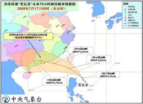 中新網(wǎng)7月17日電 據(jù)中國氣象局網(wǎng)站消息,7月16日晚,菲律賓呂宋島以東洋面的熱帶低壓加強為今年第6號熱帶風暴“莫拉菲”(MOLAVE)。